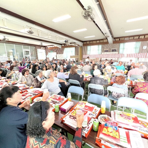 友利部落会(友利雅已会長)は26日、友利部落センターで敬老会を開催した。最高長寿者は105歳の下地千代さん。新敬老者13人を含めた敬老者190人の長寿を祝った。友利会長は「皆さまはこれまでさまざまな困難を乗り越えてこられ戦争を経験された方もいます。オイルショックやコロナウイルスなど数々の困難がありその度乗り越え、現在の友利部落を築き上げて来られた事に対し敬意と感謝を申し上げます」とあいさつした。 来賓の座喜味一幸市長(代読)は「高齢化社会が進む中、新しい生活様式を取り入れて互いに支え合い励まし合いながら長寿の喜びを実感できるより良い社会の実現を目指して共に頑張ってまいります」と述べた。 同会は荷川取真心さんの「かぎやで風」で幕明け。穂花会神里舞練場13人の子どもたちによる「海のチンボーラー」や子供会の「校歌遊戯」は会場を和ませ、「民謡ショー」「長生きサンバ」など数々の余興が会場を盛り上げた。 「かぎやで風」を踊った荷川取さんは「本日はおめでとうございます。これからも元気で長生きしてください」と話していた。