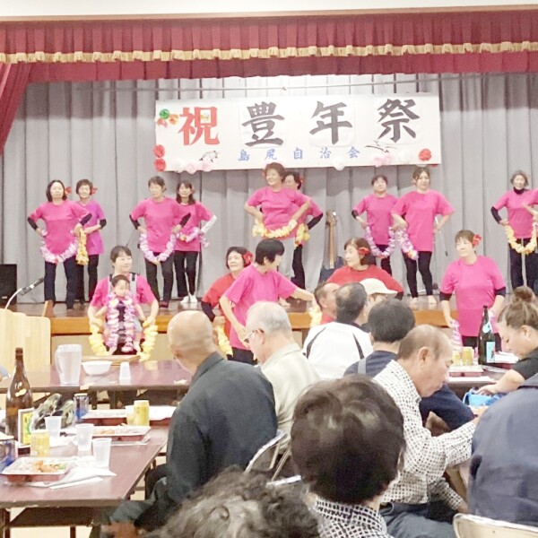 島尻自治会は26日、パーントゥの里会館で豊年祭を開催した。コロナ禍で中断していた伝統行事を昨年に続き開催し、地域住民の交流と地元産業の振興を祝う場とした。