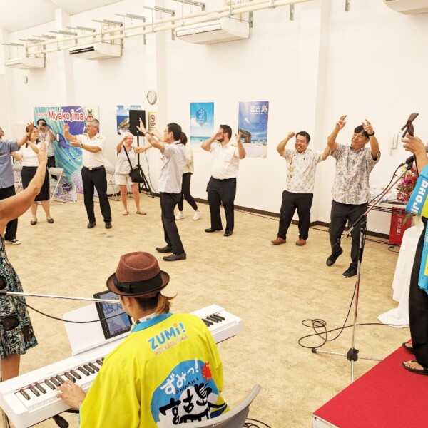 米国ウインドスタークルーズの「スターブリーズ号」(1万2969㌧、全長159㍍)が8日、平良港に寄港し、座喜味一幸氏市長や観光関係者らが平良港旅客受入施設(CIQ=税関、出入国管理、検疫)で出迎えるなど歓迎セレモニーが行われた。