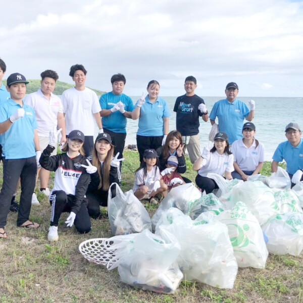 沖縄銀行宮古支店(豊里晢充支店長)の職員14人が8日早朝、高野漁港ビーチで清掃活動を実施した。