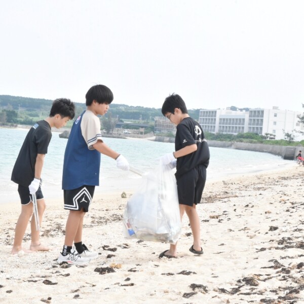 児童らと交流深める SKY・伊良部島小 佐和田の浜で清掃