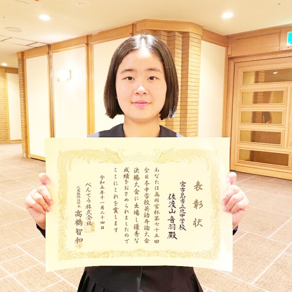 佐渡山さん(北中3年)決勝出場 高円宮杯全日本中学英語弁論大会 全国...