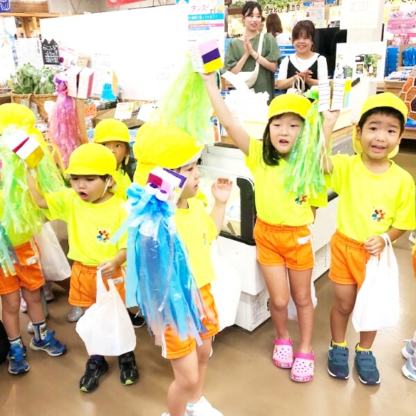 獅子舞で商売繁盛祈願 あけぼの保育園 4歳児が島の駅訪問