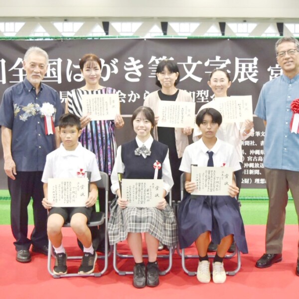 第9回全国はがき筆文字展(全国はがき筆文字協会主催)の表彰式が26日、JTAドーム宮古島で行われた。