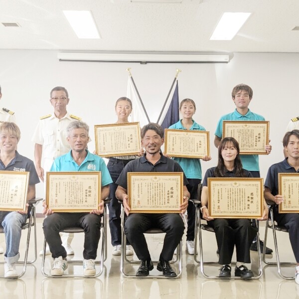 宮古島海上保安部(福本拓也部長)は8月31日、平良港湾合同庁舎会議室で今年8月に起きた2件の海難救助協力者計10人に感謝状を贈呈した。
