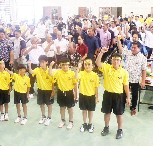 地域住民が激励会開く 砂川小男子バレー部、県代表で九州大会出場
