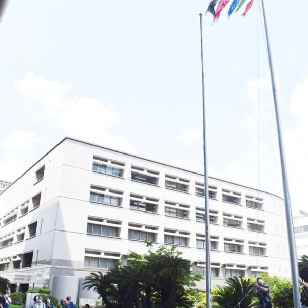 【那覇支局】県は24日、5月5日から始まる児童福祉週間の一環として、4年ぶりとなるこいのぼり掲揚式を県庁正面玄関前で行った。