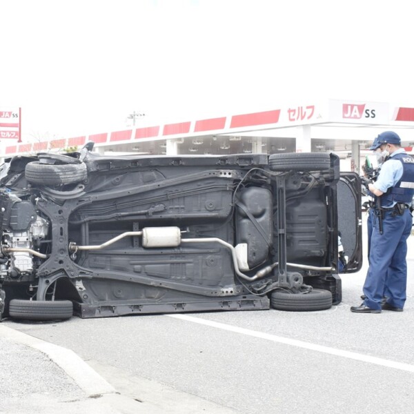 宮古島警察署によると14日午後1時57分ごろ、平良西里の県道78号線で直線道路を右折横断してきた軽四輪車を避けようとした乗用車が中央分離帯に衝突し、反対車線で横転した。