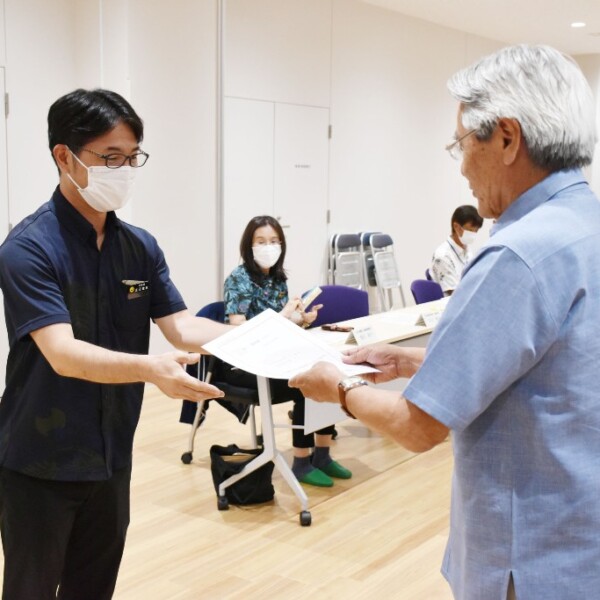 宮古島市(座喜味一幸市長)は24日、障がい者支援の課題共有や支援のあり方についての協議などを行う市自立支援協議会委員の委嘱状交付式を市役所保健センターで行い、座喜味市長が16人の委員に委嘱状を手渡した。