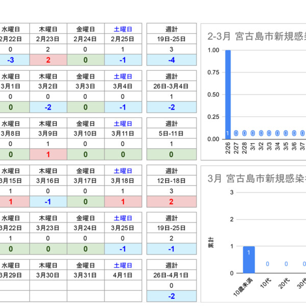 新型コロナ27日、宮古島市は0(推定値0)人【速報値】