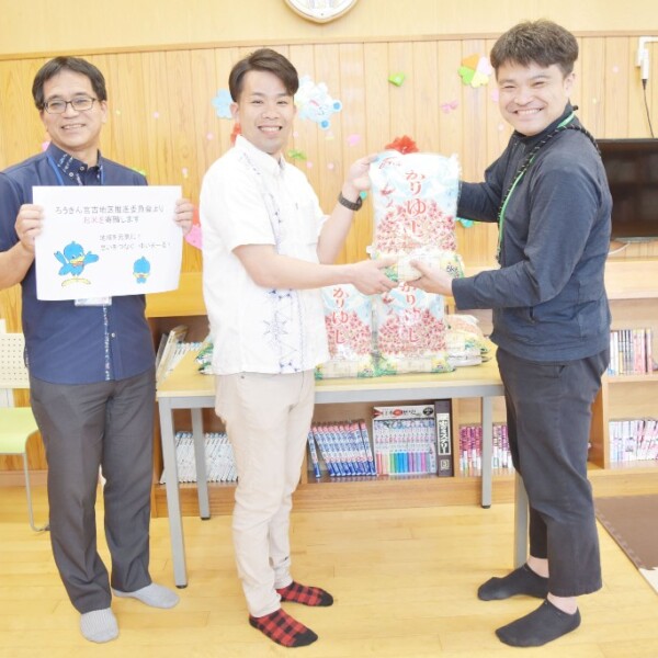 ろうきん宮古島地区推進委員会(大城元樹委員長)はコロナ禍の支援として4団体に合わせて米280㌔(5㌔56袋)を贈呈する。