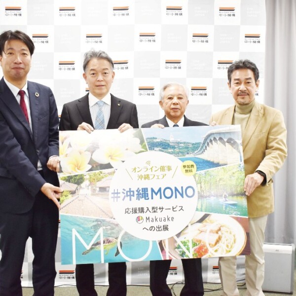 【那覇支局】中小企業基盤整備機構(中小機構)沖縄事務所の越智稔之所長らは6日、那覇市の沖縄産業支援センターで会見し、7月からクラウドファンディングによる応援購入サービス「Makuake(マクアケ)」で「沖縄フェア」を開催すると発表した。