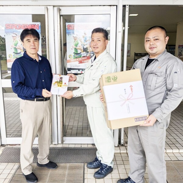 宮古製糖(渡久山和男社長)は3日、市総合体育館で第37回全日本トライアスロン宮古島大会に寄付金及び黒糖45ケースを贈呈した。