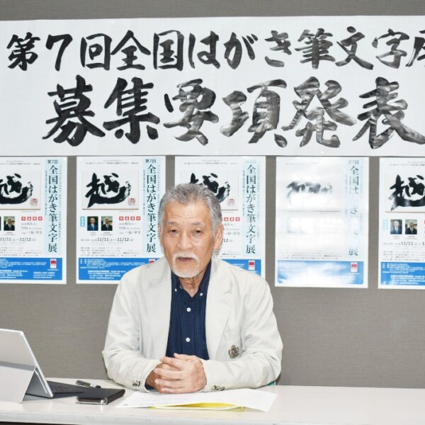 ことし11月11・12日に開催される第7回全国はがき筆文字展(主催・同実行委員会)に向けて、池田海真実行委員長は1日、未来創造センターで記者会見を行い、6月1日~7月31日の期間で作品を募集することを発表した。