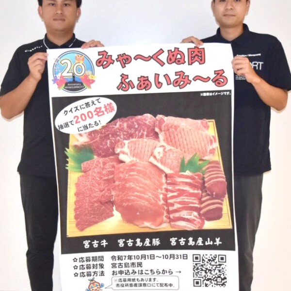 市畜産課は29日、宮古島市制施行20周年事業の一環として市民を対象にした抽選企画「みゃ~くぬ肉ふぁいみ~る抽選会」の実施を発表した。
