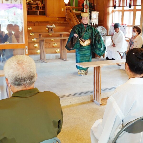宮古神社(渡慶次馨宮司)の大祭「祈年祭」が17日、同社殿で執り行われ、関係者や市民らが参列し、ことし1年の五穀豊穣と豊漁、商工業などすべての全産業の発展を祈った。