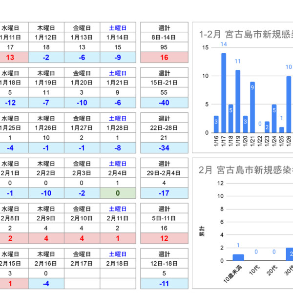 沖縄県は16日、宮古島市0(推定値6)人の新型コロナ感染を確認したと発表。多良間0(推定値0)人。県立病院入院療養は軽症1人。...