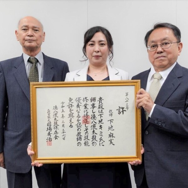 下地麻実さんに教師免許 徳八流太鼓保存会