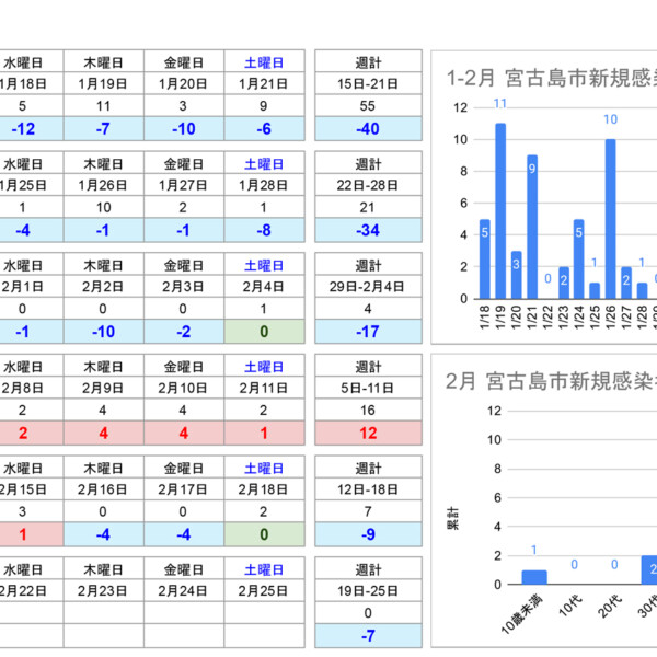 新型コロナ19日、宮古島市は0(推定値3)人【速報値】