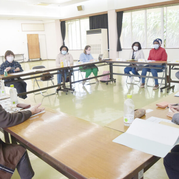 国際協力機構沖縄センター(JICA沖縄)の課題別研修「公衆衛生活動による母子保健強化」に参加しているポルトガル語圏の研修員7人は27日、上野公民館で行われた公衆衛生看護婦経験者講話に参加した。