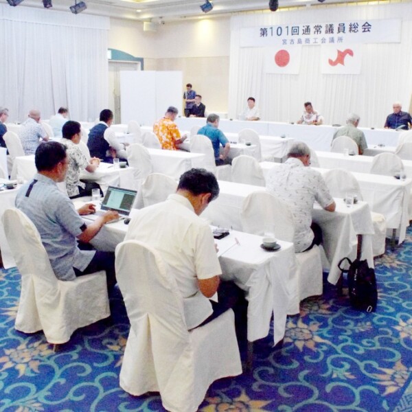 宮古島商工会議所(根路銘康文会頭)の第101回通常議員総会が26日、市内下里のホテルで開催された。