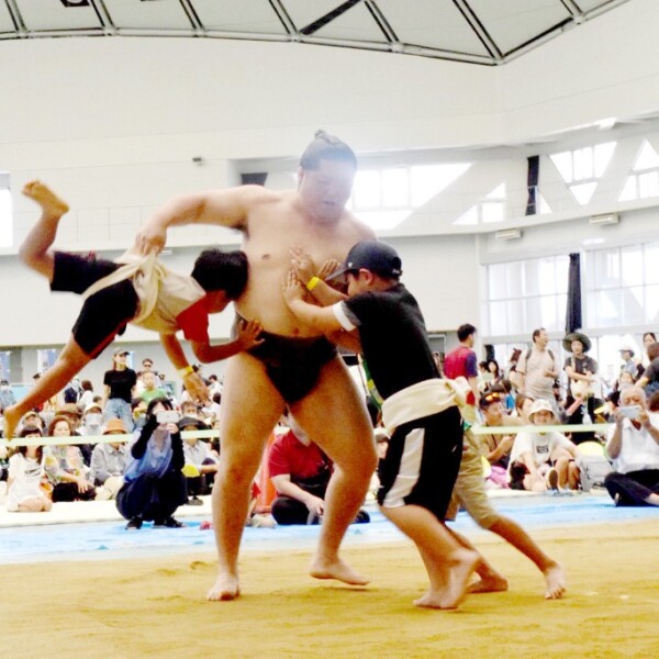 時津風部屋の宮古島合宿に合わせた「ふれあい相撲イベント」が22日、JTAドーム宮古島で開催され、多くの家族連れが訪れ、会場は活気に包まれた。